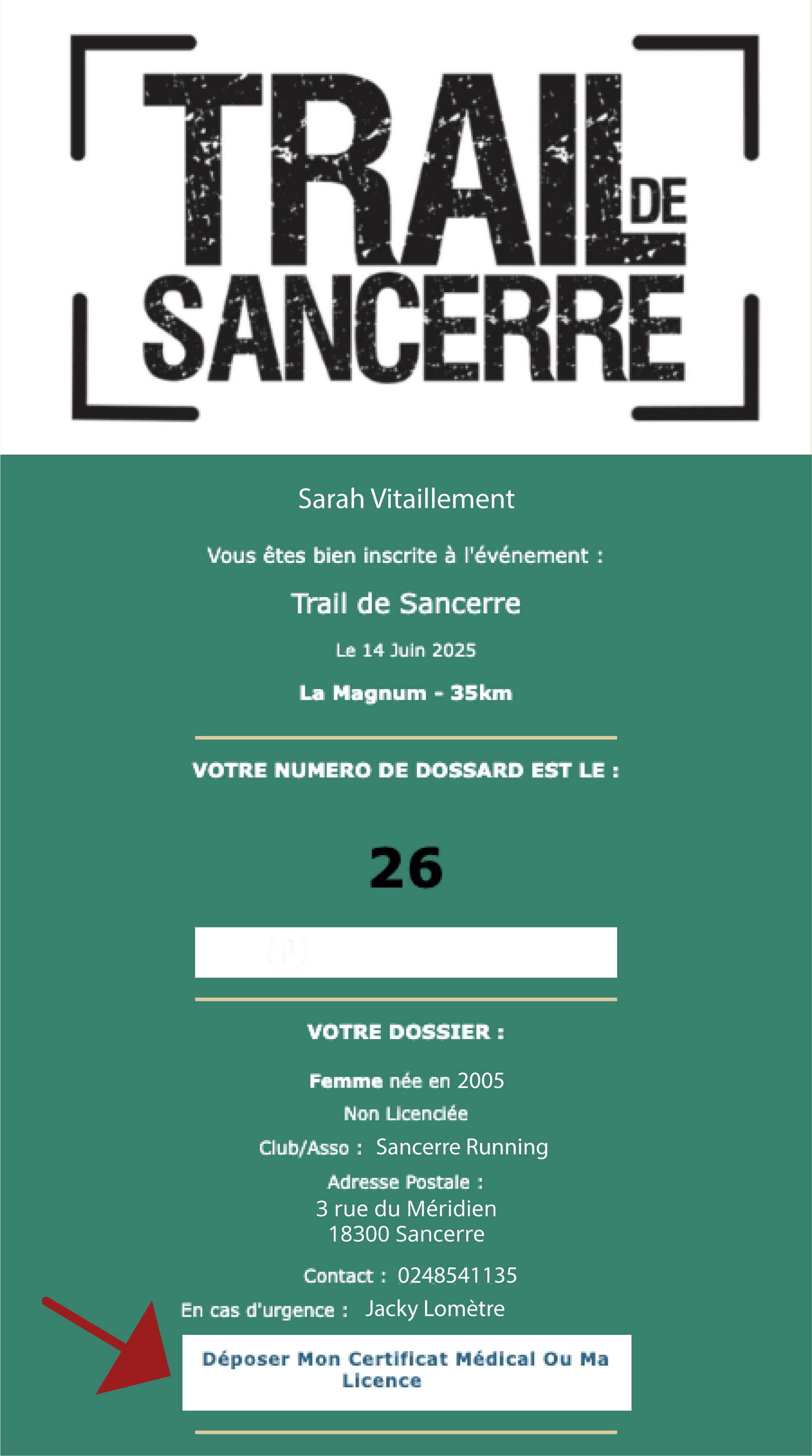 Il n’est valable que 3 mois donc pour le Trail de Sancerre, vous devez le faire et le renseigner qu’à partir du 14 mars, pas avant !
